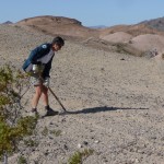 Thanks to an industrious ATV rider, today we take it upon ourselves to become involved with maintenance rather than our usual naturalist work. We are spending the morning raking over tire tracks engraved upon the desert surface like a giant wound.
